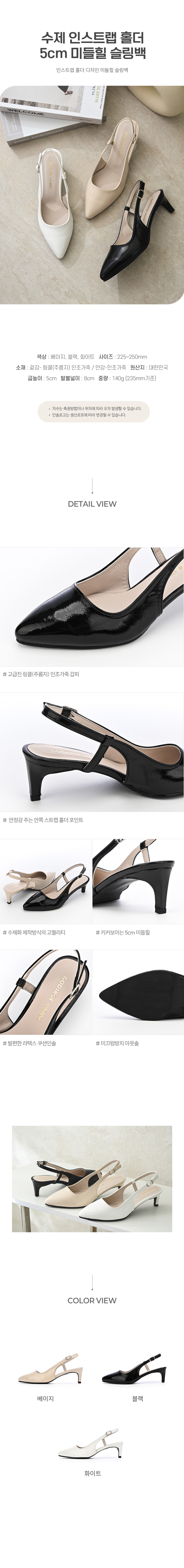 수제 인스트랩 홀더 5cm 미들힐 슬링백
