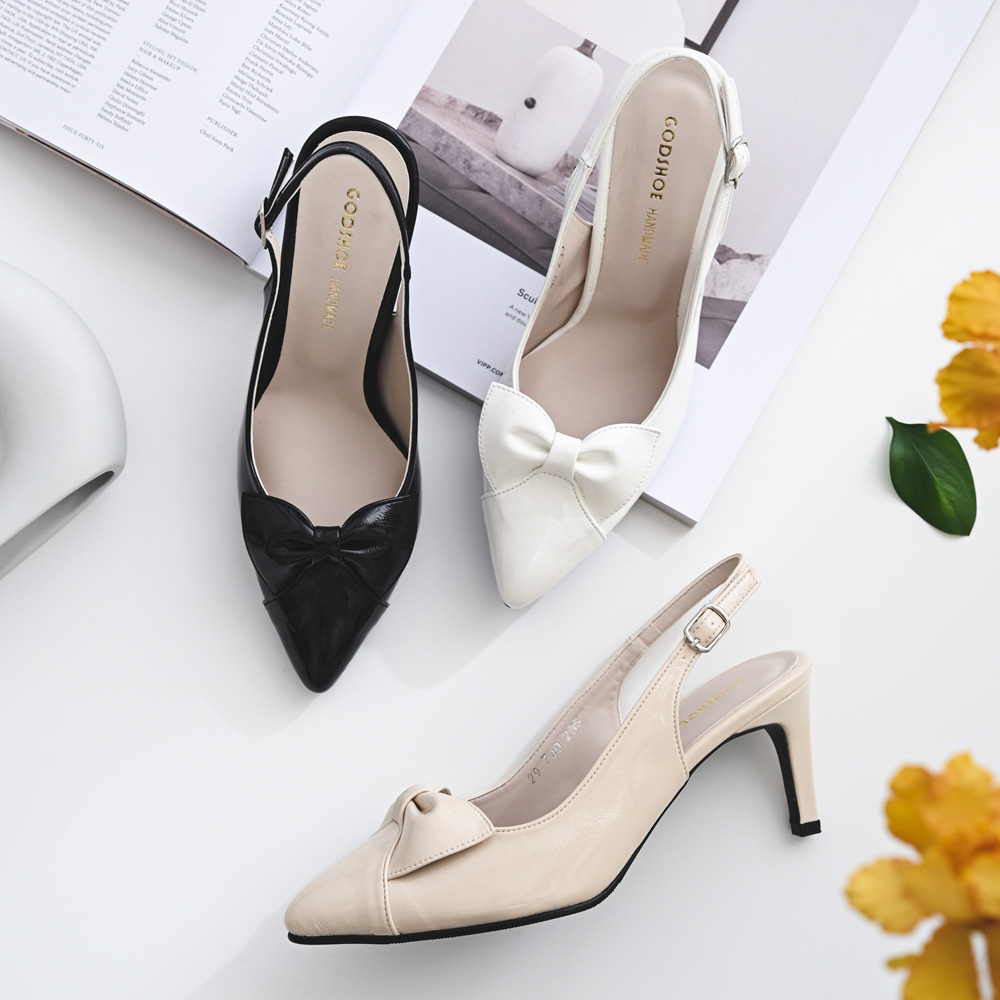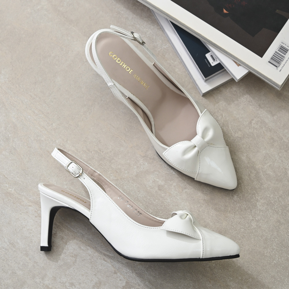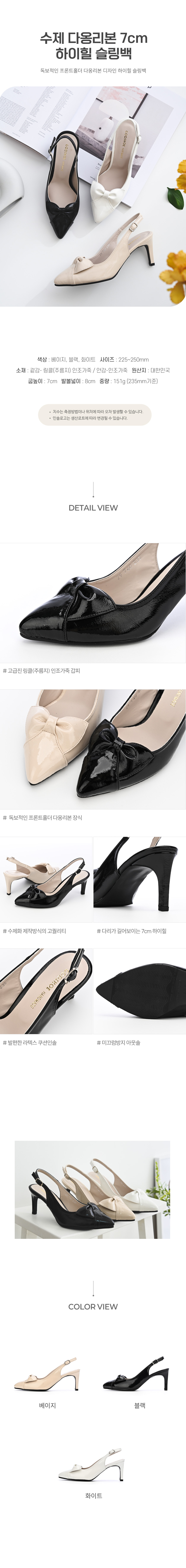 수제 다옹리본 7cm 하이힐 슬링백