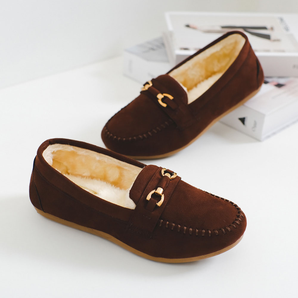 체인 모카신 방한 플랫슈즈