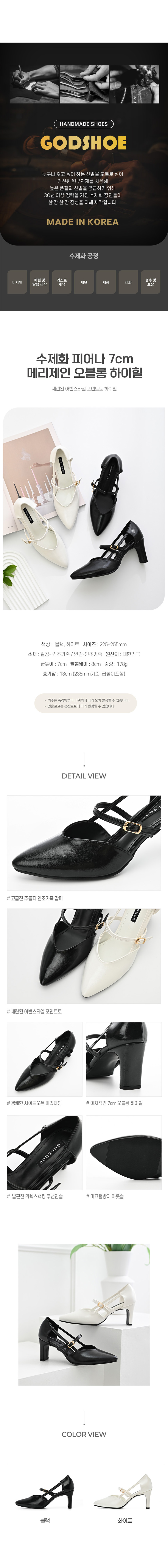 수제화 피어나 7cm 메리제인 오블롱 하이힐
