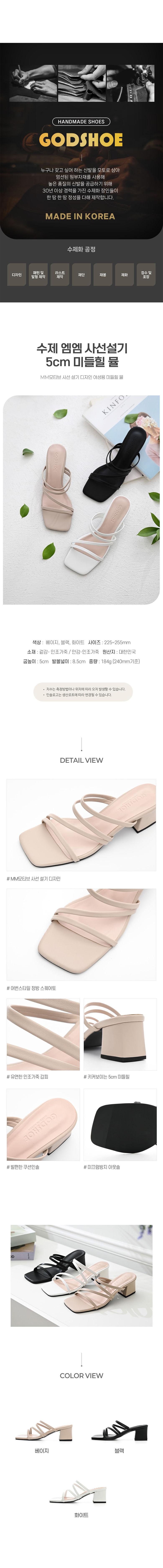 수제 엠엠 사선설기 5cm 미들힐 뮬