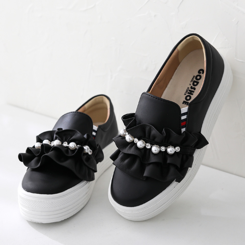 진주큐빅 프릴 통굽슬립온
