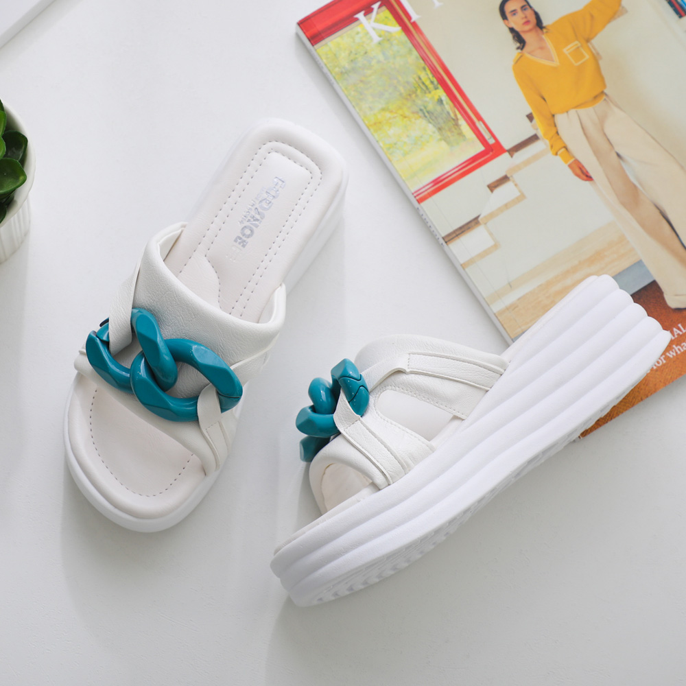 이미러프 체인 웨지힐 통굽슬리퍼