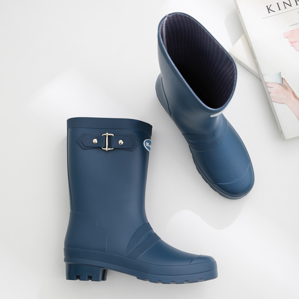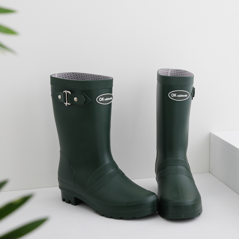 더블벨트 미들 레인부츠