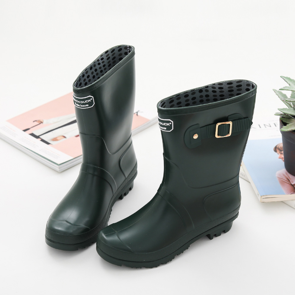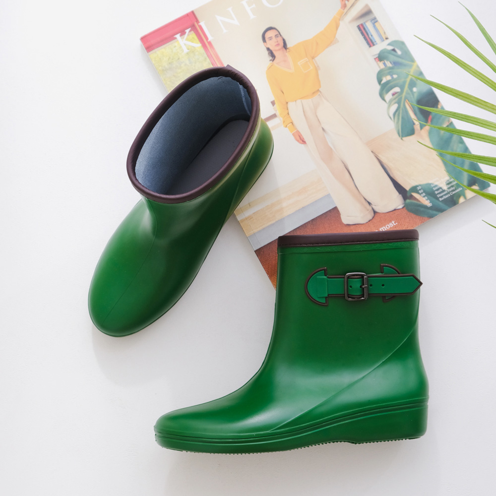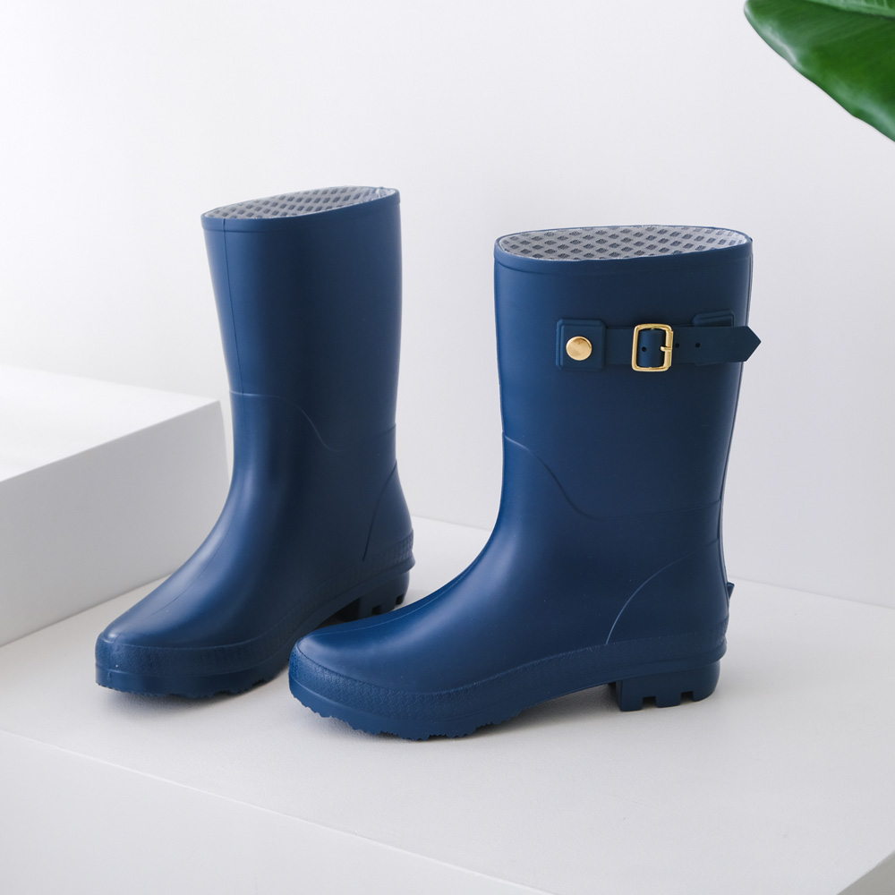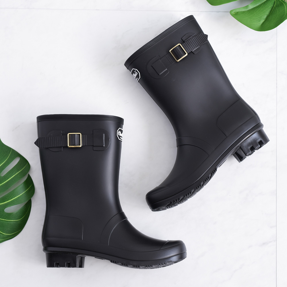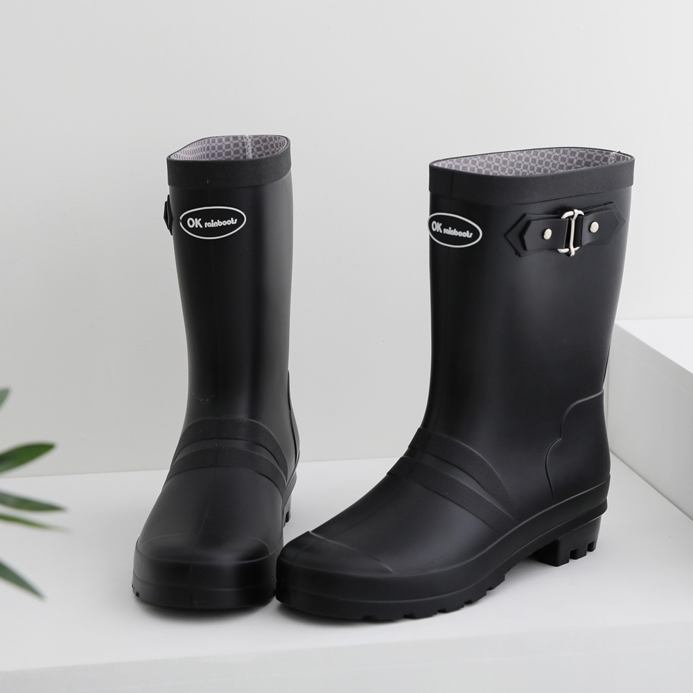 더블벨트 미들 레인부츠