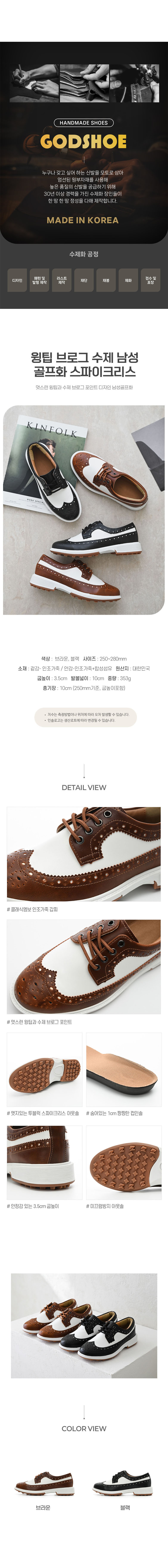 윙팁 브로그 수제 남성 골프화 스파이크리스
