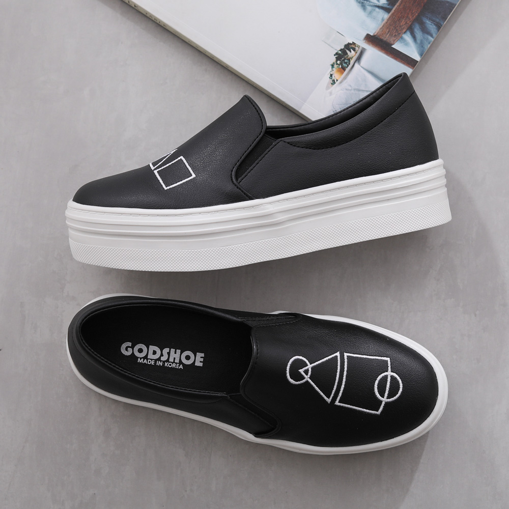 도형 자수 통굽슬립온